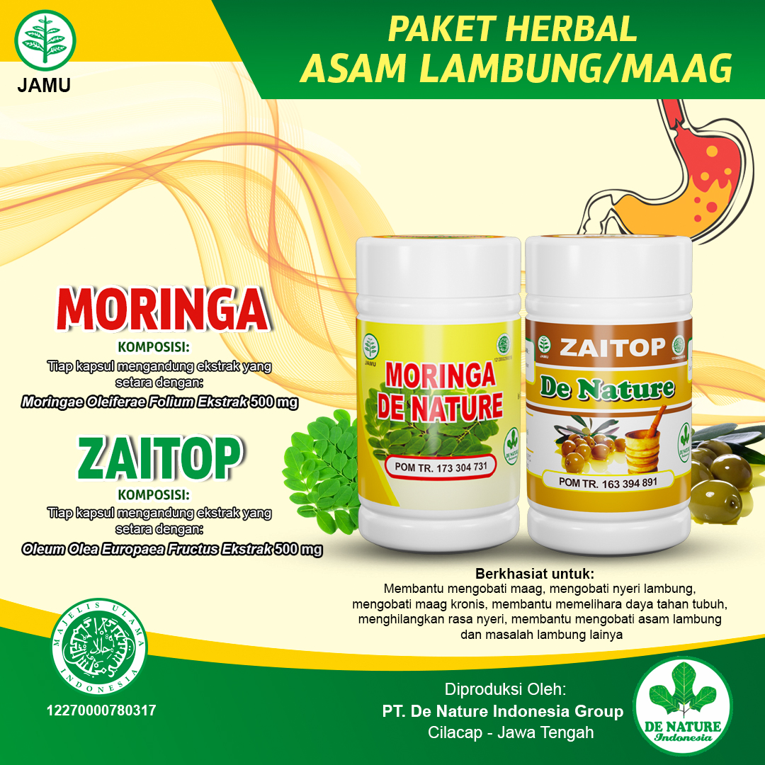 Rp 150.000Kami PT. DE NATURE INDONESIA telah memformulasikan khusus obat herbal Penyakit Asam Lambung / GERD yg di buat 100% herbal oleh herbalis yg expert di bidang herbal, terbukti aman di konsumsi tanpa menyebabkan ketergantungan dan tanpa efek samping, dan hasil yg InsyaAllah sangat optimal. ✅ KHASIAT : ✔️ Mengobati Maag Ringan MaupunKronis ✔️ Mengobati Asam Lambung ✔️ Menghilangkan Rasa Nyeri ✔️ Memelihara Kesehatan Lambung ✔️ Mengobati Berbagai MasalahLambung ✔️ Menjaga Kesehatan Tubuh ✅ IZIN BPOM : ✔️ ZAITOP DE NATURE : POMTR 163394891 ✔️ MORINGA DE NATURE : POM TR173304731… selengkapnya