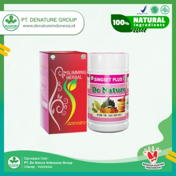 Paket Obat Pelangsing De Nature SLIMMING HERBAL dan SINGSET PLUS adalah suplemen pelangsing tubuh yang sudah terkenal dan terpercaya khasiatnya, SLIMMING HERBAL dan SINGSET PLUS Herbal Asli dirancang secara khusus untuk menekan nafsu makan, mempercepat metabolisme tubuh, detoksifikasi racun dalam tubuh, membakar lemak terutama dibagian paha, lengan dan perut.